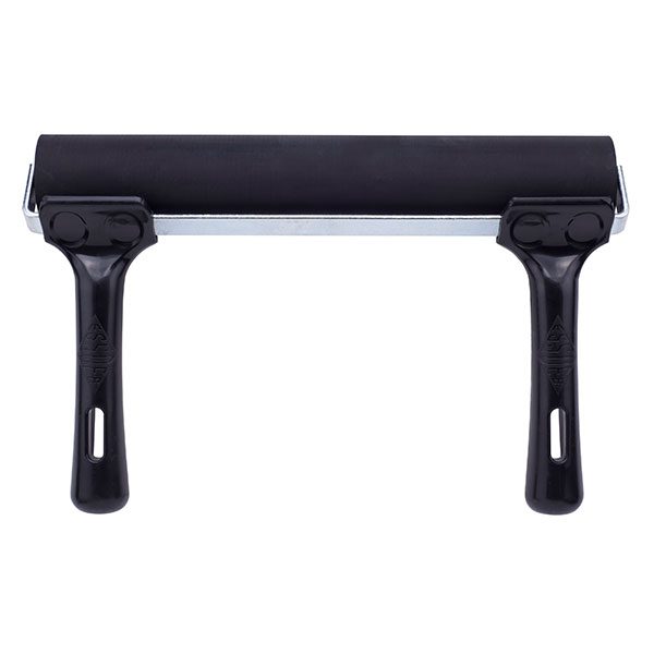 This heavyweight professional roller helps artists achieve perfect printing results time after time. Featuring a medium-hard (60 shore) machine-ground EPDM rubber roller with a large (122mm / 4.5”) circumference this roller holds a greater quantity of ink and offers an enhanced pickup and transfer. The greater ink coverage is especially useful on larger printing blocks and allows smooth, consistent and accurate printing. The 250mm comes as standard with double handles.