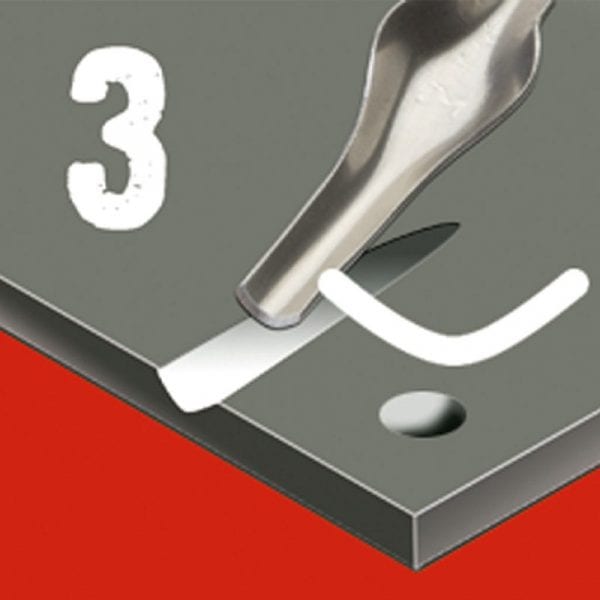 5 precision-ground high-carbon steel Lino Cutters Style 3 – A tight, round cutter able to cut a 2mm deep-sided line. Good for straight lines. Great in SoftCut but cut too deep in lino and the upright walls of the cut can leave little support and weaken the top surface. With practice, as with No. 3, it’s useful for cutting small circles by using a swivel motion.