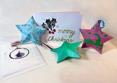 The students took our brief a stage further by turning their prints into Christmas themed products, such as cards, gift tags and decorations, and then hosted a Christmas Fair to help raise funds for the college.