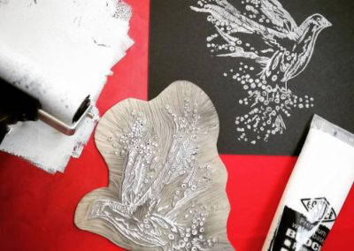 We set second year students on the Level 3 Art and Design course a brief to design some Christmas themed linoprints. We also donated a range of lino printing equipment to the college print room.